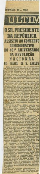 Recorte de jornal a noticiar a assistência do Pres[...]