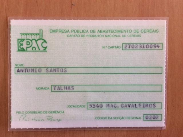 Cartão de Produtor Nacional de Cereais da Empresa [...]